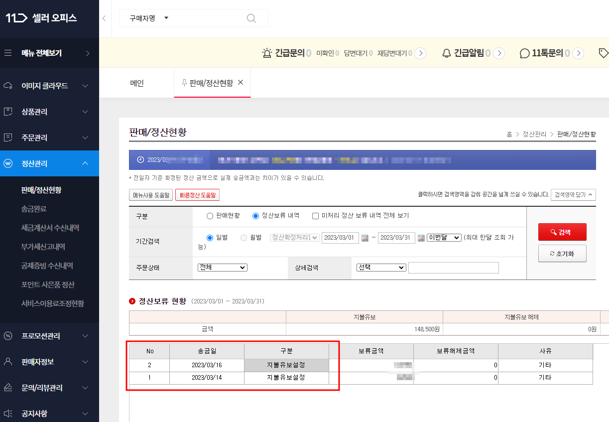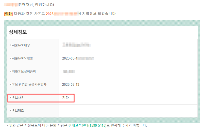 셀러오피스에서 사유 확인이 가능하다고 한다.