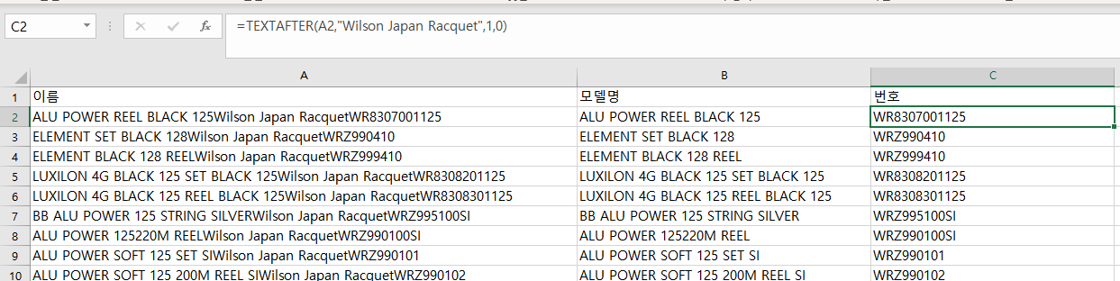 =TEXTAFTER(A2,"Wilson Japan Racquet",1,0)