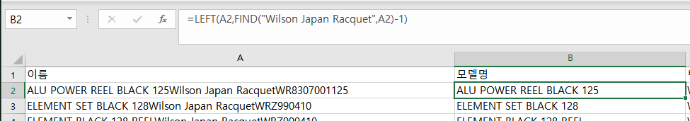기존엔 LEFT, FIND 함수를 사용하여 나누었음.